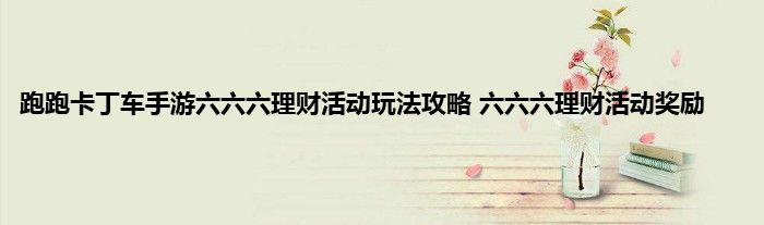 《跑跑卡丁车手游》六六六理财活动玩法攻略