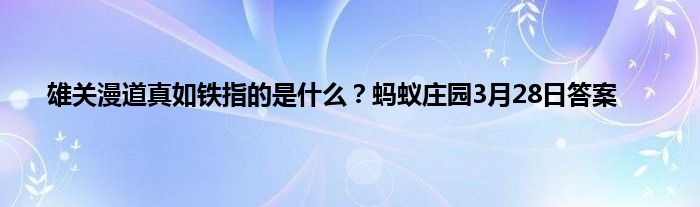 蚂蚁庄园今日答案是什么?蚂蚁庄园每天都会问玩家一些问题,答对了的话就能领取饲料给小鸡喂食。3月28日的最新问题公布,这次的问题是:“雄关漫道真如铁”中的“雄关”指的是?以下是详细答案,一起来看看吧。