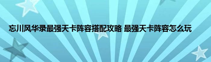 以上就是小编带来的忘川风华录最强天卡阵容怎么搭配的全部内容了,希望对大家有所帮助。