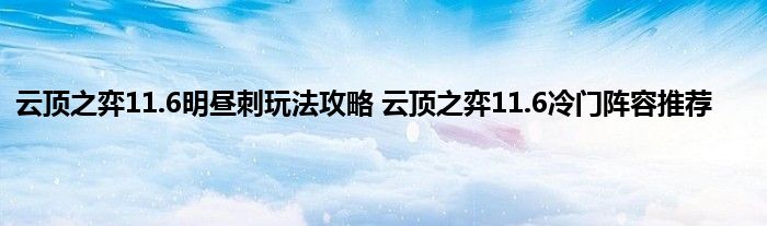 云顶之弈11.6明昼刺怎么玩?云顶之弈新的羁绊明昼一直不温不火,不过在最近的11.6版本更新以后,这套阵容的强度有了明显的提高,因此这套阵容现在也是一个比较不错的选择了。以下是这阵容的具体玩法,希望大家喜欢。