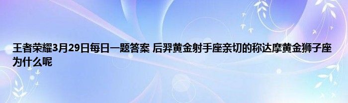 以上就是王者荣耀3月29日每日一题答案 后羿黄金射手座亲切的称达摩黄金狮子座为什么呢的推荐,相信通过王者荣耀3月29日每日一题答案 后羿黄金射手座亲切的称达摩黄金狮子座为什么呢这篇文章能帮到你,也欢迎对游戏很感兴趣小伙伴们一起来探讨。