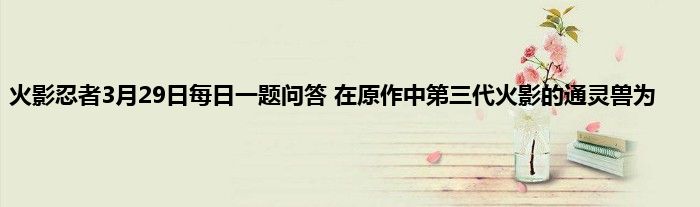 以上就是火影忍者3月29日每日一题问答 在原作中第三代火影的通灵兽为的推荐,相信通过火影忍者3月29日每日一题问答 在原作中第三代火影的通灵兽为这篇文章能帮到你,也欢迎对游戏很感兴趣小伙伴们一起来探讨。