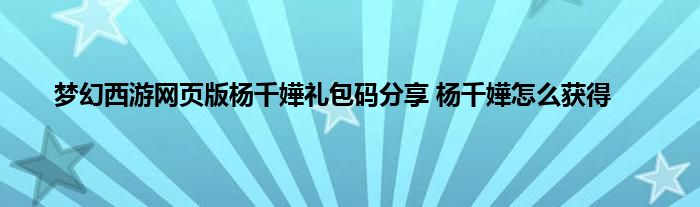 梦幻西游网页版杨千嬅是一个比较热门的伙伴了,目前在游戏当中又和大家见面了,玩家可以使用兑换码来兑换到这个角色,其实杨千嬅实力还算是很不错的,但是培养的难度有些高。还有很多玩家不知道杨千嬅要如何获得,那下面就让小编带来这个角色的相关介绍,包括她的猎取方法。