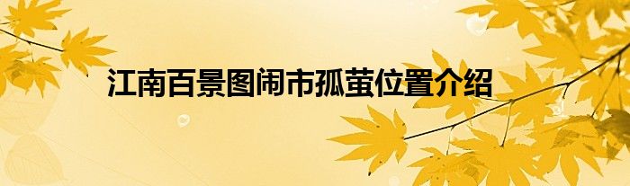 江南百景图游戏最近新上线了很多活动,其中的一个活动闹市孤萤。那么,闹市孤萤在哪?想必不少玩家都想知道在找闹市孤萤的位置,今天小编就给大家带来江南百景图闹市孤萤的具体位置介绍,希翼可以帮助到有需要的玩家。