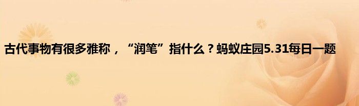 大家好,今天是5月31日,也是5月的最后一天,今天蚂蚁庄园的问题已经出来了,其中一个问题和小常识有关,问题是古代事物有很多雅称,“润笔”在古代指什么?润笔是指拿毛笔泡水这个动作,那么答案是什么呢,下面就来一起看看吧。