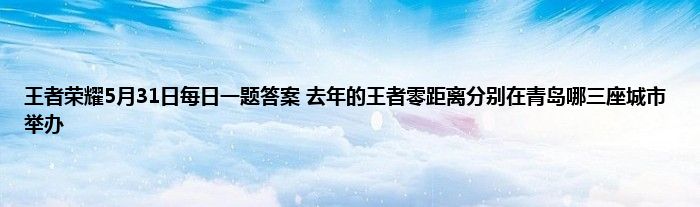 王者荣耀公众号每日都会推出一道问题,只需要回复wz+正确答案就可以获得每日奖励。今天(5月31日)的问题是:在昨日推文中,去年的王者零距离,分别在杭州、______、青岛哪三座城市举办呢?小编这就来告诉大家王者荣耀5月31日每日一题答案的正确答案。