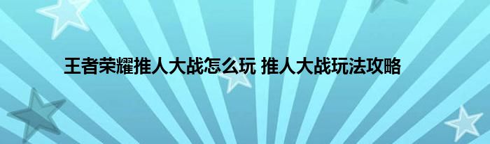 推人大战是王者荣耀即将上线的一个新娱乐玩法,很多玩家都想知道这个推人大战玩法是什么样的。下面小编带来了王者荣耀推人大战玩法攻略,一起来看看吧~