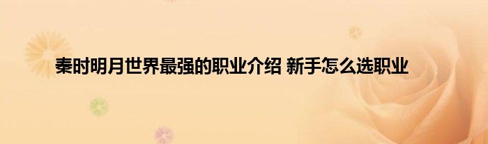 秦时明月世界最强的职业介绍 新手怎么选职业