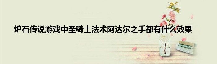 今天来聊聊关于炉石传说游戏中圣骑士法术阿达尔之手都有什么效果的文章,游戏是很多人的选择,但是游戏玩多了也会身心疲惫,现在就为大家来简单介绍下炉石传说游戏中圣骑士法术阿达尔之手都有什么效果,希望对各位小伙伴们有所帮助。