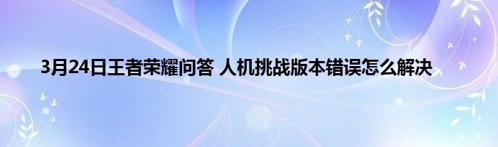 今天来聊聊关于3月24日王者荣耀问答 人机挑战版本错误怎么解决的文章,游戏是很多人的选择,但是游戏玩多了也会身心疲惫,现在就为大家来简单介绍下3月24日王者荣耀问答 人机挑战版本错误怎么解决,希望对各位小伙伴们有所帮助。