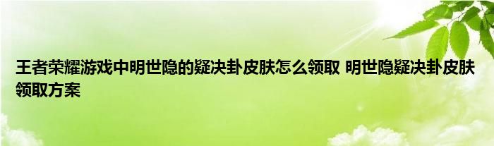 今天来聊聊关于王者荣耀游戏中明世隐的疑决卦皮肤怎么领取 明世隐疑决卦皮肤领取方案的文章,游戏是很多人的选择,但是游戏玩多了也会身心疲惫,现在就为大家来简单介绍下王者荣耀游戏中明世隐的疑决卦皮肤怎么领取 明世隐疑决卦皮肤领取方案,希望对各位小伙伴们有所帮助。