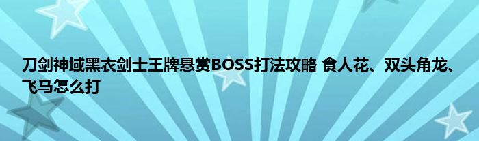刀剑神域黑衣剑士王牌中悬赏玩法是一个主流玩法,其中悬赏boss有三个boss,食人花、双头角龙和飞马,三个boss有不同机制,也需要不同的打法,那么三个boss要怎么打呢,小编收集了相关攻略,下面就来跟着小编一起来看看吧。