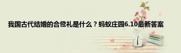 大家好,今天是6月10日,今天的蚂蚁庄园问题已经出来了,其中一个问题和我国古代的结婚习俗有关,古代结婚有种礼节叫做合卺礼,那么这个合卺礼是指什么呢,小编整理和收集了有关答案,下面就来尾随小编一起来看看答案吧。