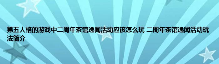 今天来聊聊关于第五人格的游戏中二周年茶馆逸闻活动应该怎么玩 二周年茶馆逸闻活动玩法简介的文章,游戏是很多人的选择,但是游戏玩多了也会身心疲惫,现在就为大家来简单介绍下第五人格的游戏中二周年茶馆逸闻活动应该怎么玩 二周年茶馆逸闻活动玩法简介,希望对各位小伙伴们有所帮助。