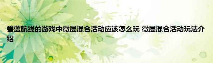 今天来聊聊关于碧蓝航线的游戏中微层混合活动应该怎么玩 微层混合活动玩法介绍的文章,游戏是很多人的选择,但是游戏玩多了也会身心疲惫,现在就为大家来简单介绍下碧蓝航线的游戏中微层混合活动应该怎么玩 微层混合活动玩法介绍,希望对各位小伙伴们有所帮助。