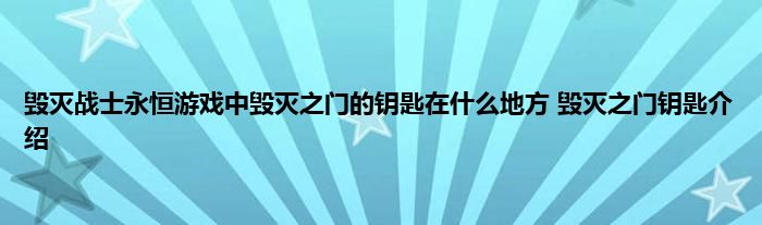 今天来聊聊关于毁灭战士永恒游戏中毁灭之门的钥匙在什么地方 毁灭之门钥匙介绍的文章,游戏是很多人的选择,但是游戏玩多了也会身心疲惫,现在就为大家来简单介绍下毁灭战士永恒游戏中毁灭之门的钥匙在什么地方 毁灭之门钥匙介绍,希望对各位小伙伴们有所帮助。