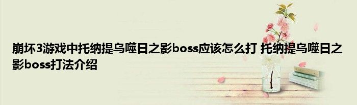 以上就是崩坏3游戏中托纳提乌噬日之影boss应该怎么打 托纳提乌噬日之影boss打法介绍的推荐,相信通过崩坏3游戏中托纳提乌噬日之影boss应该怎么打 托纳提乌噬日之影boss打法介绍这篇文章能帮到你,也欢迎对游戏很感兴趣小伙伴们一起来探讨。