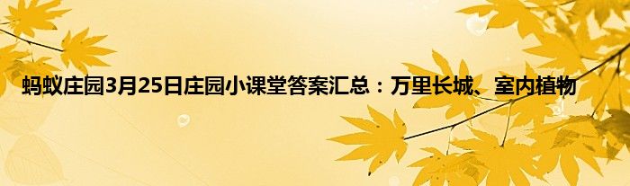 蚂蚁庄园3月25日庄园小课堂答案汇总:万里长城、室内植物