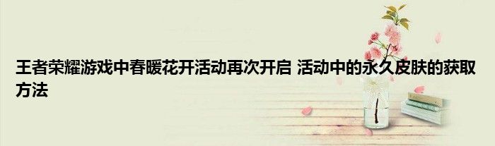 以上就是王者荣耀游戏中暖花开活动再次开启 活动中的永久皮肤的获取方法的推荐,相信通过王者荣耀游戏中暖花开活动再次开启 活动中的永久皮肤的获取方法这篇文章能帮到你,也欢迎对游戏很感兴趣小伙伴们一起来探讨。