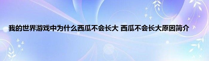 以上就是我的世界游戏中为什么西瓜不会长大 西瓜不会长大原因简的推荐,相信通过我的世界游戏中为什么西瓜不会长大 西瓜不会长大原因简这篇文章能帮到你,也欢迎对游戏很感兴趣小伙伴们一起来探讨。