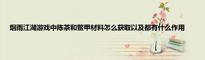 小编今天给各位玩家朋友们带来的是烟雨江湖游戏中陈茶和鳖甲材料怎么获取以及都有什么作用,有记得的玩家朋友吗?不记得也没有关系,小编已经帮助大家把烟雨江湖游戏中陈茶和鳖甲材料怎么获取以及都有什么作用找了出来,你只需要动动你的小手就可以轻松知道啦,快来瞧一瞧吧。
