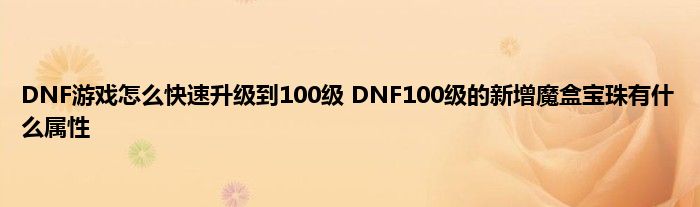 小编今天给各位玩家朋友们带来的是DNF游戏怎么快速升级到100级 DNF100级的新增魔盒宝珠有什么属性,有记得的玩家朋友吗?不记得也没有关系,小编已经帮助大家把DNF游戏怎么快速升级到100级 DNF100级的新增魔盒宝珠有什么属性找了出来,你只需要动动你的小手就可以轻松知道啦,快来瞧一瞧吧。