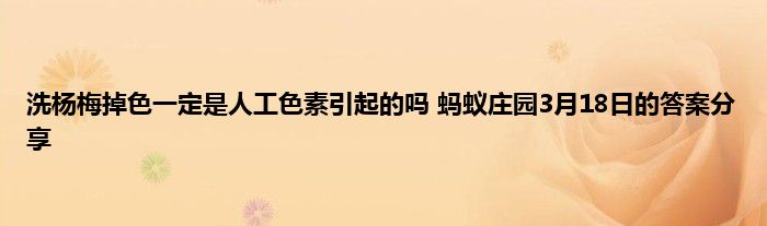 蚂蚁庄园小课堂当中答题玩法是每个玩家每天都会参与的一个活动,通过回答每天的问题就可以拿到饲料奖励,3月18日最新的问题已经给玩家们带来今天的问题就是清洗杨梅时发现杨梅掉色,这一定是添加人工色素引起的吗?那么这道题目的答案是什么呢?下面就来看下3月18日的答案吧。