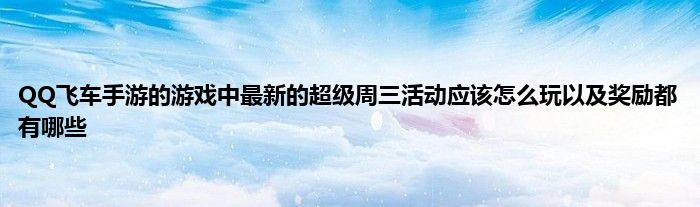 今天弟哥来聊聊一篇关于QQ飞车手游的游戏中最新的超级周三活动应该怎么玩以及奖励都有哪些的文章,游戏是很多人的选择,但是游戏玩多了也会身心疲惫,现在就为大家来简单介绍下QQ飞车手游的游戏中最新的超级周三活动应该怎么玩以及奖励都有哪些,希望对各位小伙伴们有所帮助。