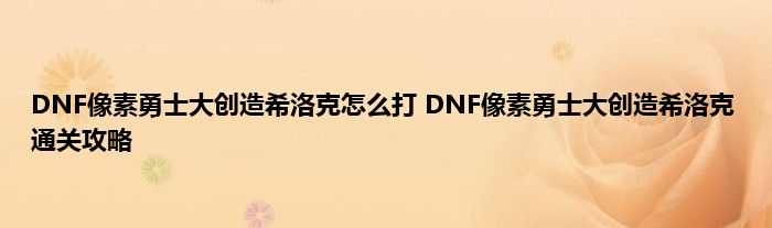 DNF像素勇士大创造希洛克打法攻略