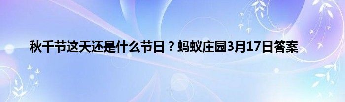 我国古代有“秋千节”,这天还是什么节日?蚂蚁庄园3月17日的问题正式公布,如果回答正确就可以领取奖励,可能很多的玩家还不太清楚具体的答案是什么,为了让大家都能领取到小鸡饲料,下面就是蚂蚁庄园小课堂3月17日的答案和答案解析。