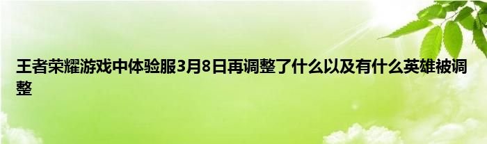 以上就是王者荣耀游戏中体验服3月8日再调整了什么以及有什么英雄被调整的推荐,相信通过王者荣耀游戏中体验服3月8日再调整了什么以及有什么英雄被调整这篇文章能帮到你,也欢迎对游戏很感兴趣小伙伴们一起来探讨。