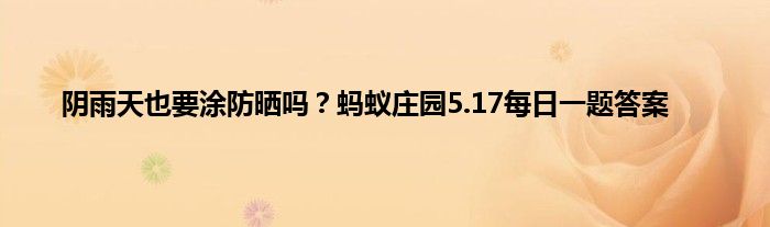 今天是5月17日,今天蚂蚁庄园的问题已经出来了,大家经常涂防晒霜,特殊是大太阳的时候,那么没太阳的时候需要涂防晒吗,阴天、室内主要阳光的反射、散射,阳光的反射、散射携带的能量就弱了好多,那么到底需不需要呢,下面就来跟着小编一起来看看答案吧。