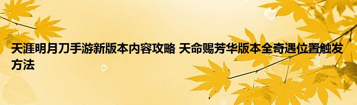 天涯明月刀手游马上上线新版本天命赐芳华,这次的新版本会有一些新的内容比如锦鲤/神兵奇遇等上线。每次这些内容都藏的比较深,因此不少玩家可能会错过,这里就带来了天涯明月刀手游新版本奇遇介绍。
