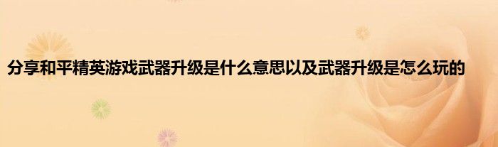 今天弟哥来聊聊一篇关于和平精英游戏武器升级是什么意思以及武器升级是怎么玩的的文章,游戏是很多人的选择,但是游戏玩多了也会身心疲惫,现在就为大家来简单介绍下和平精英游戏武器升级是什么意思以及武器升级是怎么玩的,希望对各位小伙伴们有所帮助。