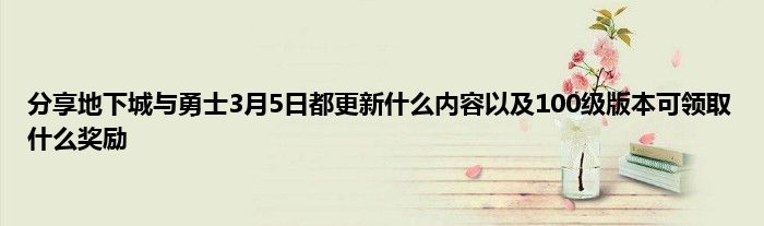 今天弟哥来聊聊一篇关于地下城与勇士3月5日都更新什么内容以及100级版本可领取什么奖励的文章,游戏是很多人的选择,但是游戏玩多了也会身心疲惫,现在就为大家来简单介绍下地下城与勇士3月5日都更新什么内容以及100级版本可领取什么奖励,希望对各位小伙伴们有所帮助。