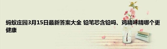 蚂蚁庄园今天的问题已经出来了,铅笔和鸡精都是我们日常生活中比较常见的物品,不过小物品大学问,今天的问题问到了铅笔芯是否真的含铅,而鸡精和味精又有什么区别,很多小伙伴不知道答案,答对了可以获得奖励,下面就跟着小编一起看看吧。
