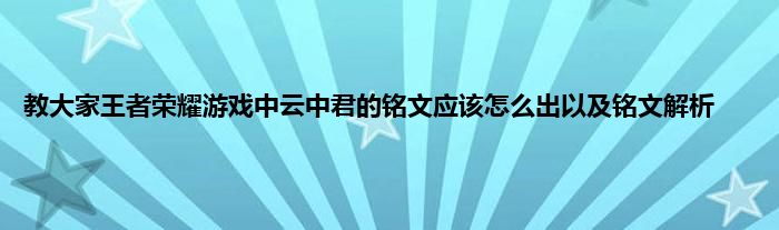 今天弟哥来聊聊一篇关于王者荣耀游戏中云中君的铭文应该怎么出以及铭文解析的文章,游戏是很多人的选择,但是游戏玩多了也会身心疲惫,现在就为大家来简单介绍下王者荣耀游戏中云中君的铭文应该怎么出以及铭文解析,希望对各位小伙伴们有所帮助。