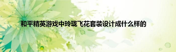 今天弟哥来聊聊一篇关于和平精英游戏中玲珑飞花套装设计成什么样的的文章,游戏是很多人的选择,但是游戏玩多了也会身心疲惫,现在就为大家来简单介绍下和平精英游戏中玲珑飞花套装设计成什么样的,希望对各位小伙伴们有所帮助。