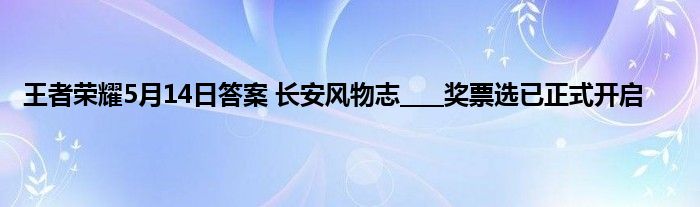 王者荣耀公众号每日都会推出一道问题,只需要回复wz+正确答案就可以获得每日奖励。今天(5月14日)的问题是:昨日推文中提到,长安风物志____奖票选已正式开启?小编这就来告诉大家王者荣耀5月14日每日一题答案的正确答案。