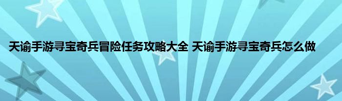 以上就是天谕手游寻宝奇兵冒险任务攻略大全 。