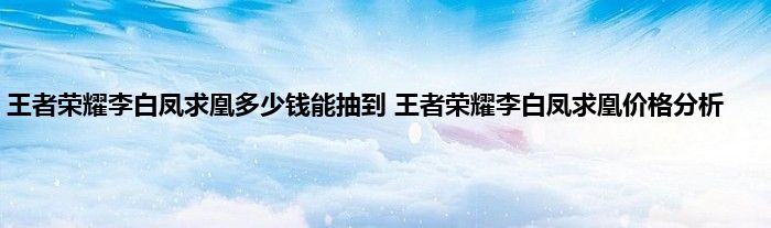 王者荣耀李白凤求凰多少钱能抽到 王者荣耀李白凤求凰价格分析