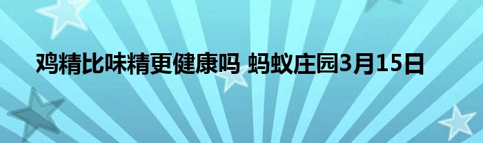 我们知道,鸡精最好不要经常食用,因为不太健康,那么,味精呢。鸡精比味精更健康吗?这是蚂蚁庄园3月15日领饲料中小课堂的问题,答对即可获得180g小鸡宝宝饲料作为奖励用于喂养小鸡。接下来就让我们来看一看正确答案吧!
