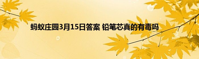 蚂蚁庄园今日答案是什么?蚂蚁庄园每天都会问玩家一些问题,答对了的话就能领取饲料给小鸡喂食。3月15日的最新问题公布,这次的问题是:铅笔里的铅有毒吗?铅笔芯真的含“铅”?以下是详细答案,一起来看看吧。