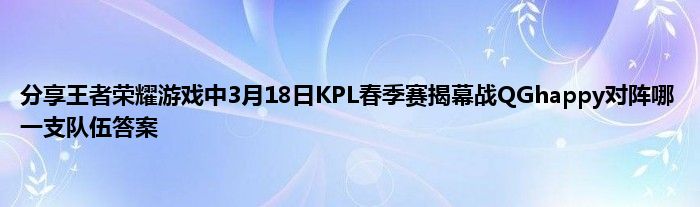 一、3月18日KPL春季赛揭幕战由重庆QGhappy对阵哪一支队伍呢?