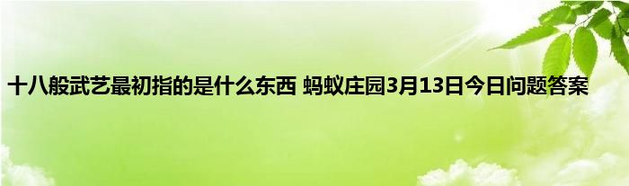 蚂蚁庄园每天都会有问题,答对的小伙伴可以获得小鸡饲料喂养小鸡,今天的问题是民间的十八般武艺指的是什么,大家都知道十八般兵器,不过其实十八般并不局限于兵器,那么问题答案是什么呢,下面就跟着小编一起看看吧。