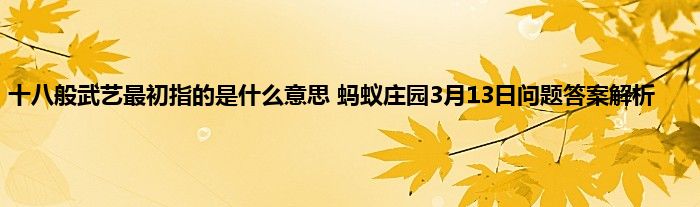蚂蚁庄园小课堂最近的题目难度都是一些比较大的,有些玩家就因为回答错了答案只能得到比较少的饲料,3月13日最新的问题已经给大家带来,今天的问题就是十八般武艺最初指的是什么意思?很多玩家不知道详细的答案是什么了,那下面就让小编给玩家们带来3月13日蚂蚁庄园小课堂问题答案介绍。
