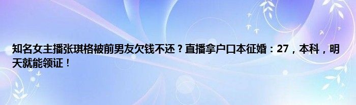前男友欠钱不还都是前男友的问题,可如今七哥年纪也不小了,主播毕竟是口青春饭,也是时候考虑一下人生的下一个阶段了,于是乎,张琪格利用起了自己主播的优势,居然开始走在直播间公开征婚,并当众拿出了户口本,还介绍了自己的情况,一副正经征婚的模样。