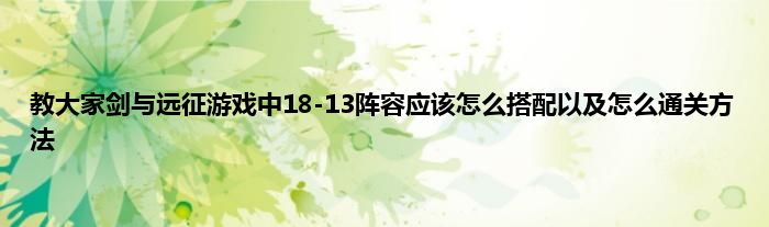剑与远征18-13应该怎么打?18-13通关阵容怎么搭配?18-13阵容如何站位呢?下面分享一下剑与远征18-13通关阵容配置及站位,希望对各位小伙伴们有所帮助。
