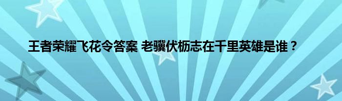 王者荣耀老骥伏枥志在千里答案解析