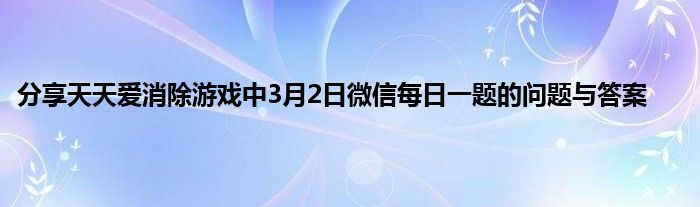 今天弟哥来聊聊一篇关于天天爱消除游戏中3月2日微信每日一题的问题与答案的文章,游戏是很多人的选择,但是游戏玩多了也会身心疲惫,现在就为大家来简单介绍下天天爱消除游戏中3月2日微信每日一题的问题与答案,希望对各位小伙伴们有所帮助。
